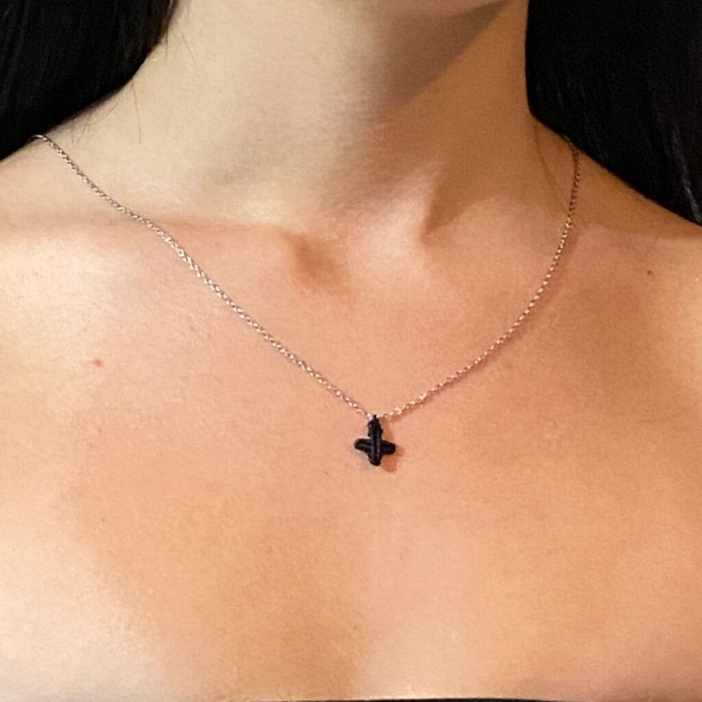 Χειροποίητο μακραμέ κολιέ σταυρός σε ασημί ατσάλινη αλυσίδα