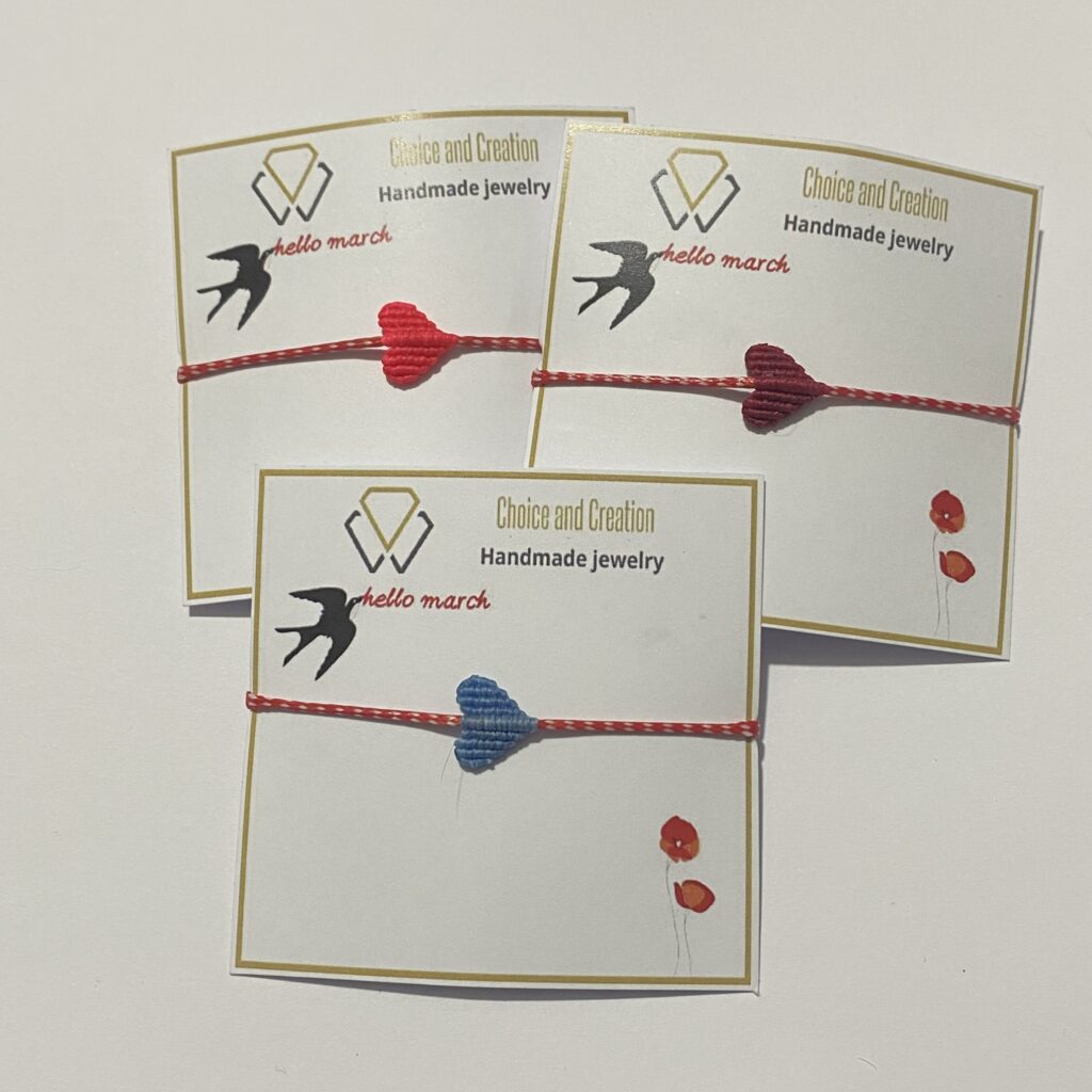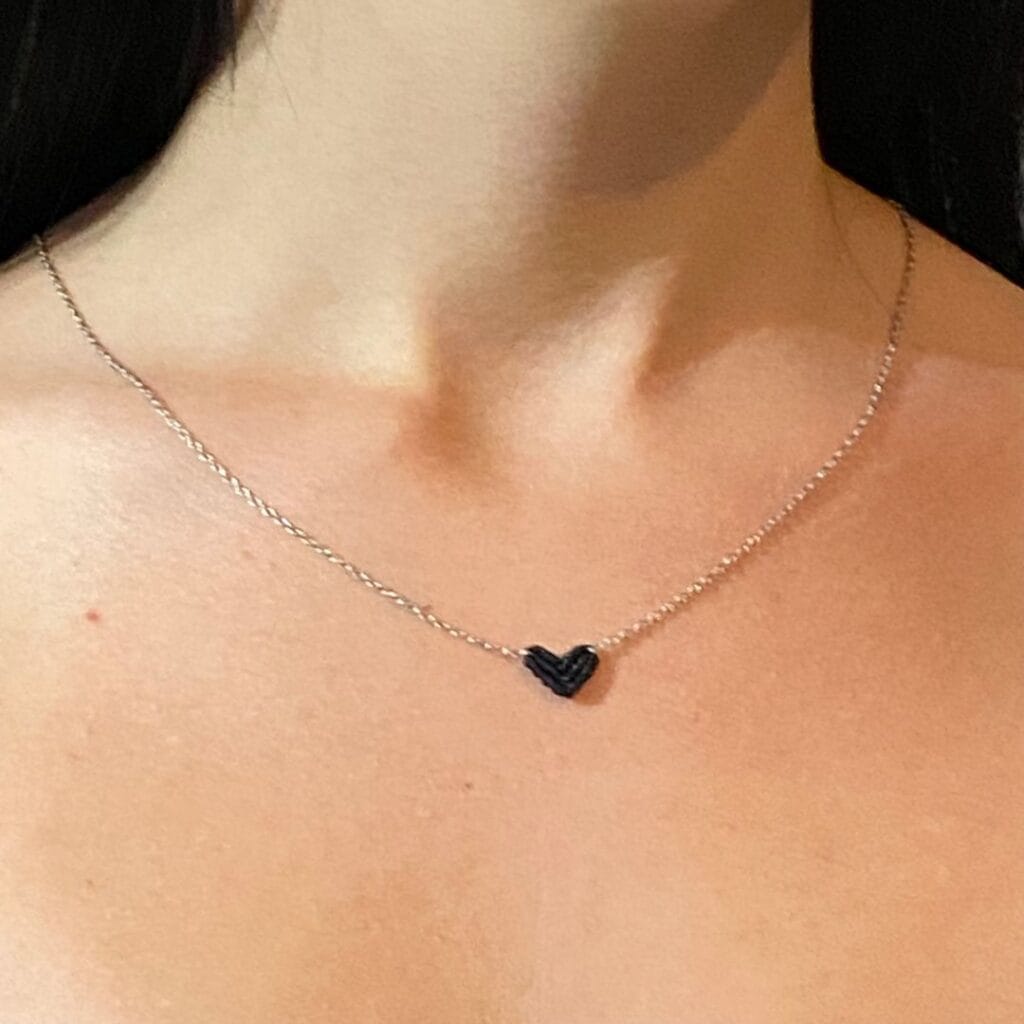 Χειροποίητο μακραμέ κολιέ μικρή καρδιά σε ασημί ατσάλινη αλυσίδα