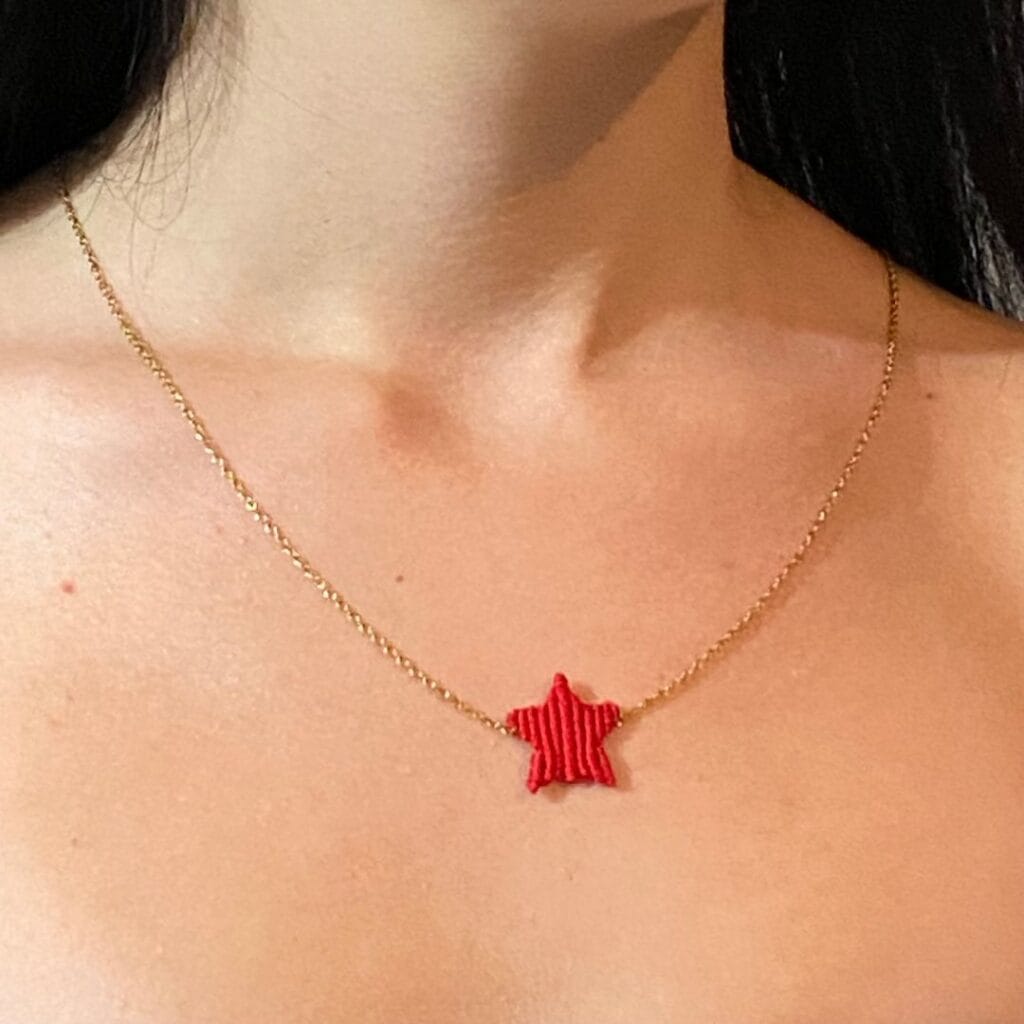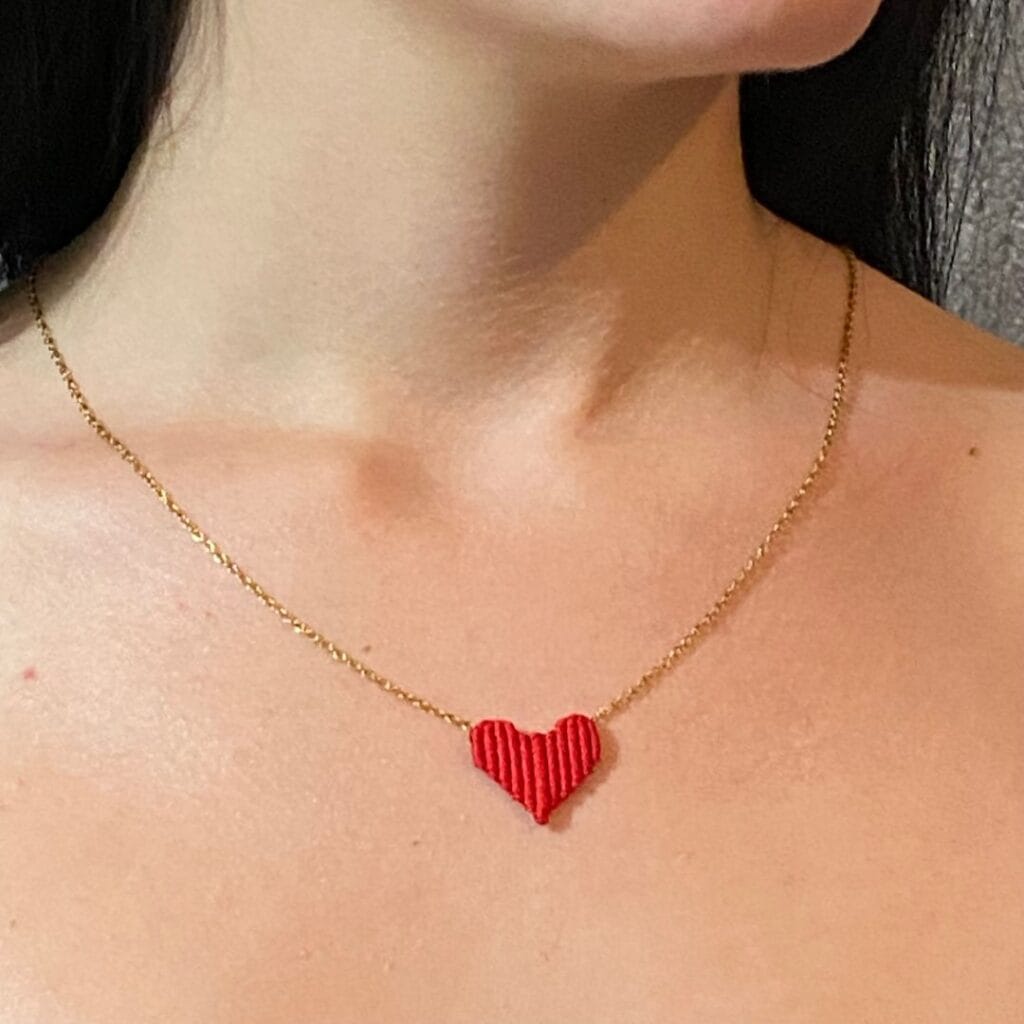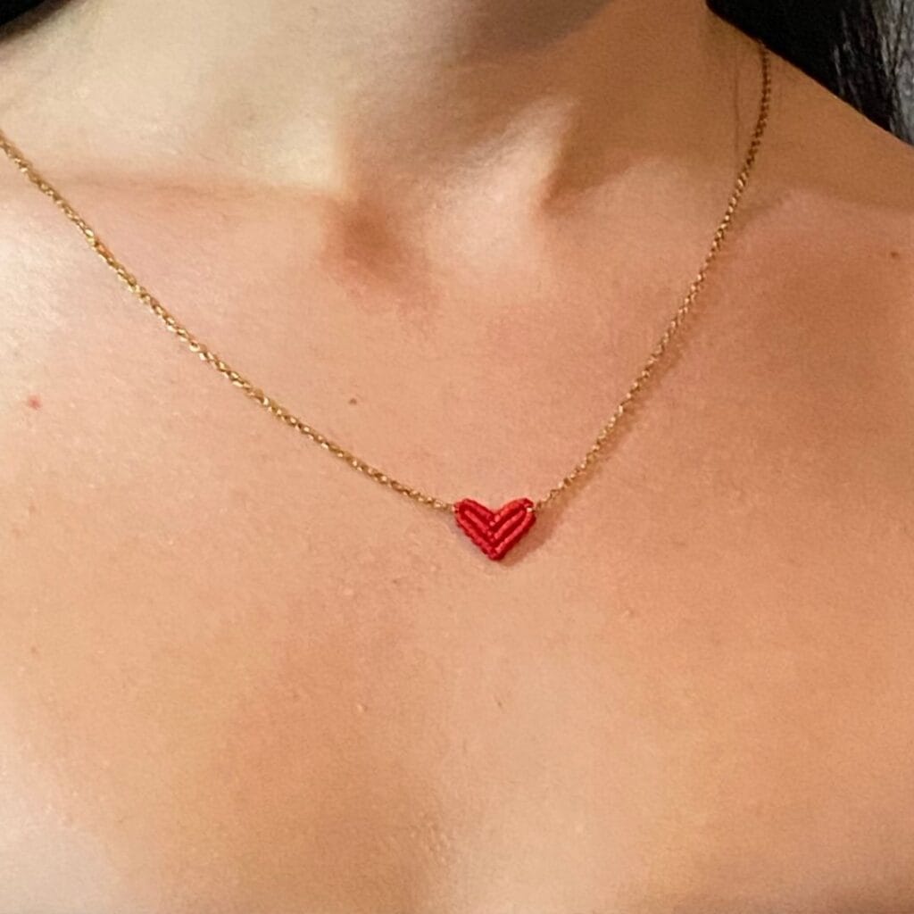Χειροποίητο μακραμέ κολιέ μικρή καρδιά σε χρυσή ατσάλινη αλυσίδα