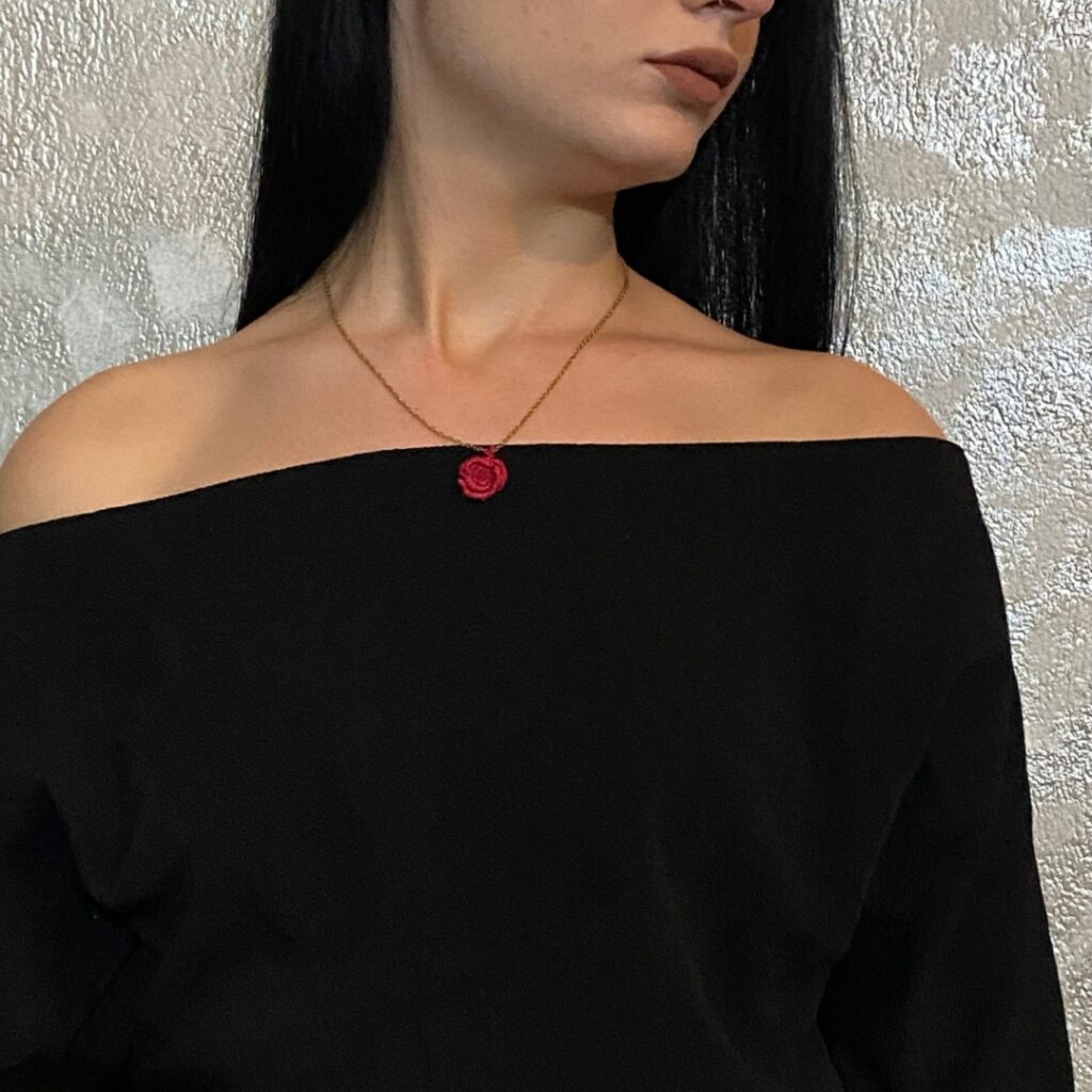 Χειροποίητο κολιέ σε ατσάλινη χρυσή αλυσίδα και στοιχείο λουλούδι από πολυμερή πηλό