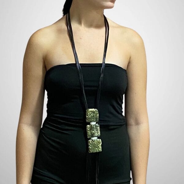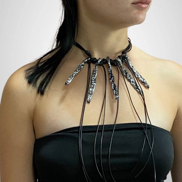Χειροποίητο εντυπωσιακό με κορδόνια κολιέ και στοιχείο από πολυμερή πηλό