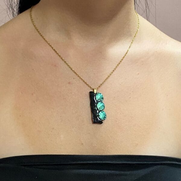 Χειροποίητο κολιέ σε ατσάλινη χρυσή αλυσίδα και στοιχείο από πολυμερή πηλό