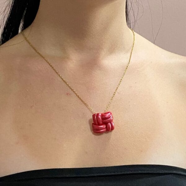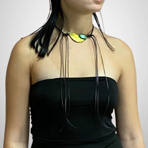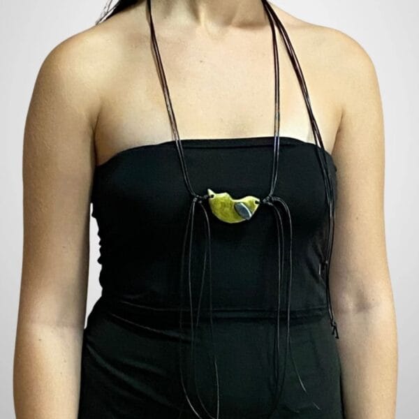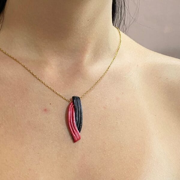 Χειροποίητο εντυπωσιακό με κορδόνια κολιέ και στοιχείο από πολυμερή πηλό