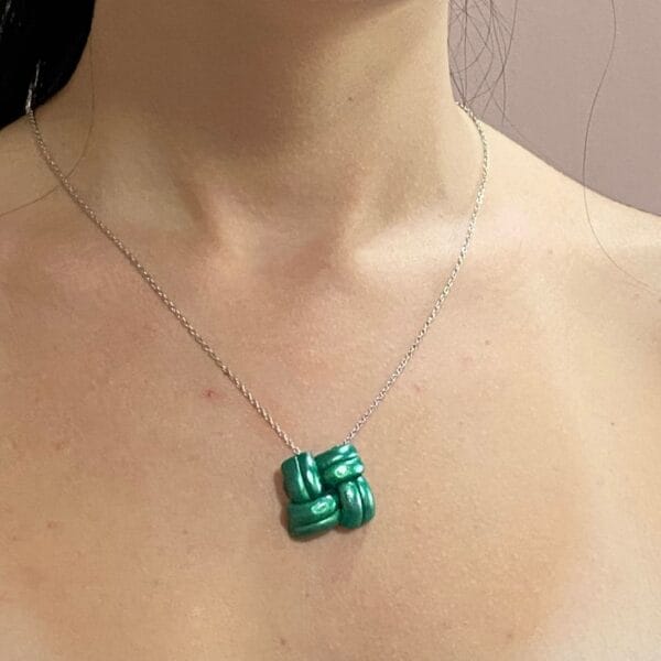 Χειροποίητο κολιέ σε ατσάλινη ασημί αλυσίδα και στοιχείο από πολυμερή πηλό