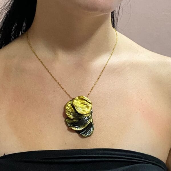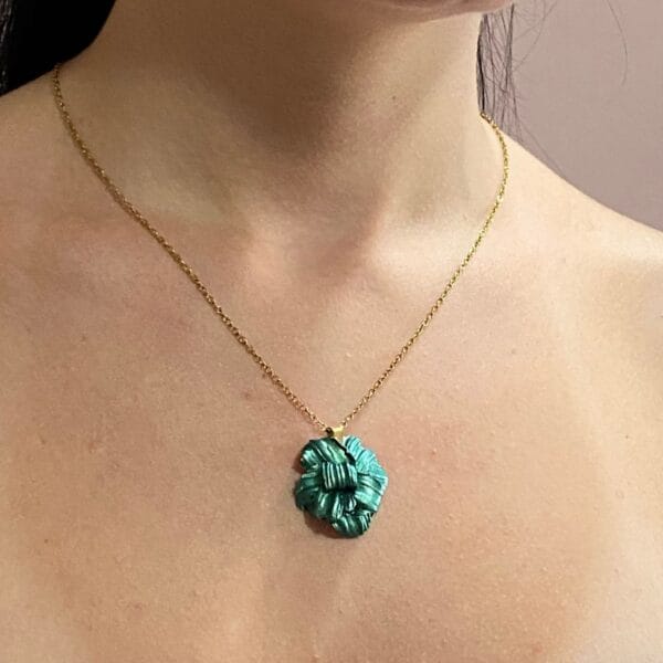 Χειροποίητο κολιέ σε ατσάλινη χρυσή αλυσίδα και στοιχείο λουλούδι από πολυμερή πηλό