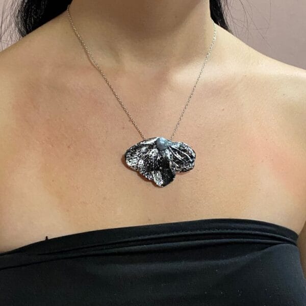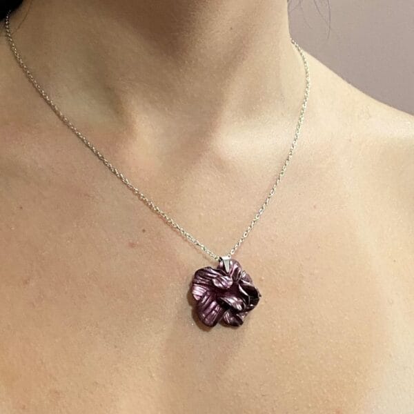 Χειροποίητο κολιέ σε ατσάλινη ασημί αλυσίδα και στοιχείο λουλούδι από πολυμερή πηλό