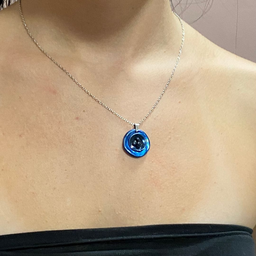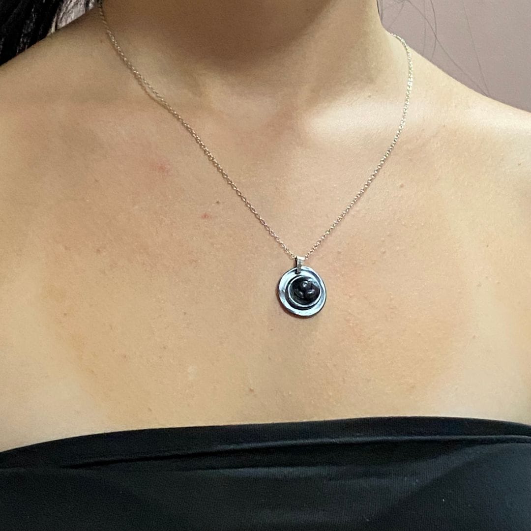 Χειροποίητο κολιέ σε ατσάλινη ασημί αλυσίδα και στοιχείο κύκλο από πολυμερή πηλό