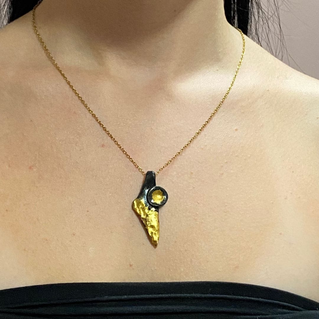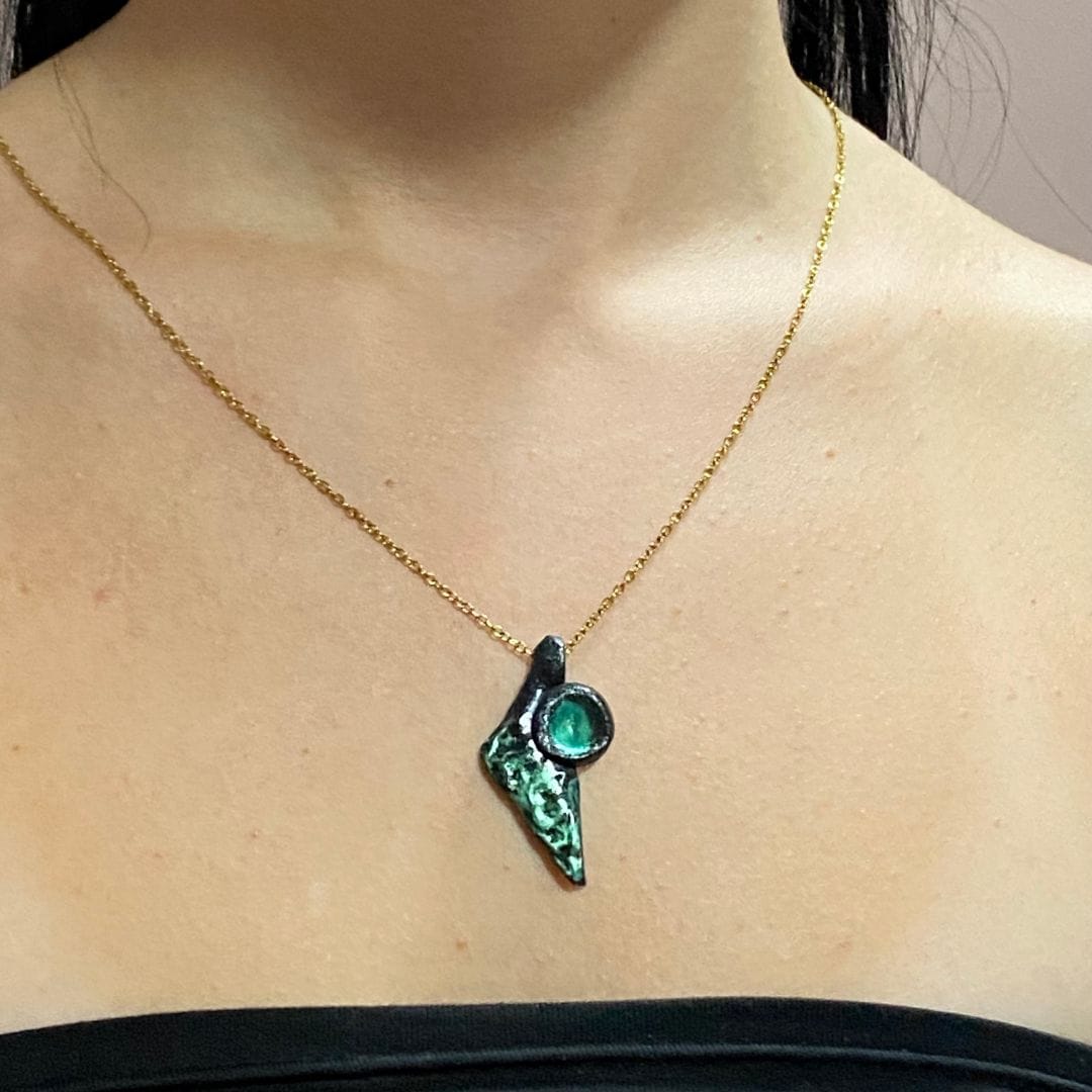 Χειροποίητο κολιέ σε ατσάλινη αλυσίδα και στοιχείο από πολυμερή πηλό .