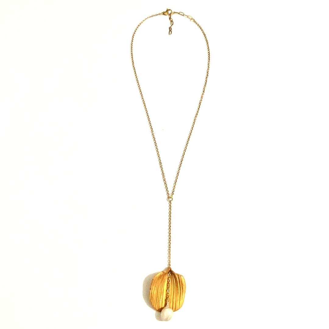 Εντυπωσιακό κοντό κολιέ με στοιχείο όστρακο με πέρλα από πολυμερή πηλό